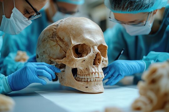 Dissecting a human skull forensic anthropology laboratory educational scientific analysis