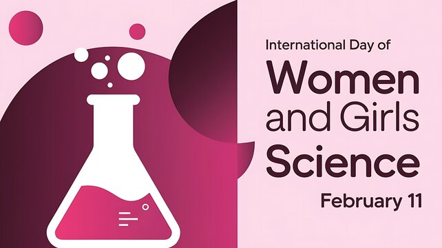 Vibrant Graphic Design for International Day of Women and Girls in Science with Laboratory Flask, Bubbles, and Bold Typography