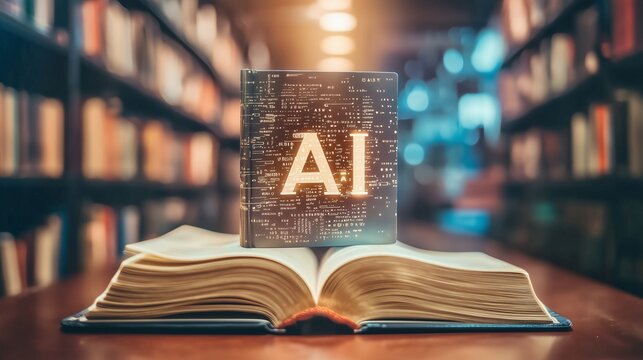 Ai book in library symbolizes the intersection of technology and traditional publishing.