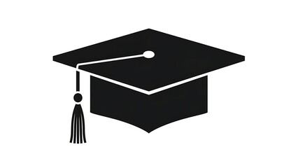 Black graduation cap with tassel icon, a universal symbol of academic achievement, educational success, and the culmination of learning. Represents higher education