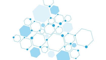 Science network pattern blue Hexagonal abstract background. Big Data Visualization structure elements . Health care and science medical pattern innovation. Template design with concept Dots and lines.
