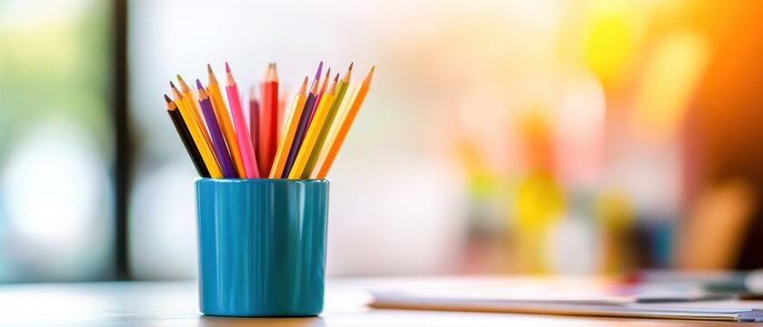 Creative educational background with stationery, books, and globes in vibrant colors