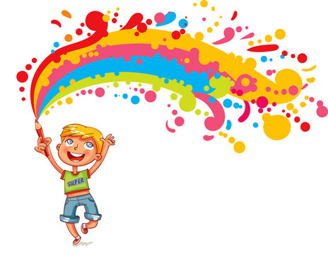 The boy draws large blobs with pencil