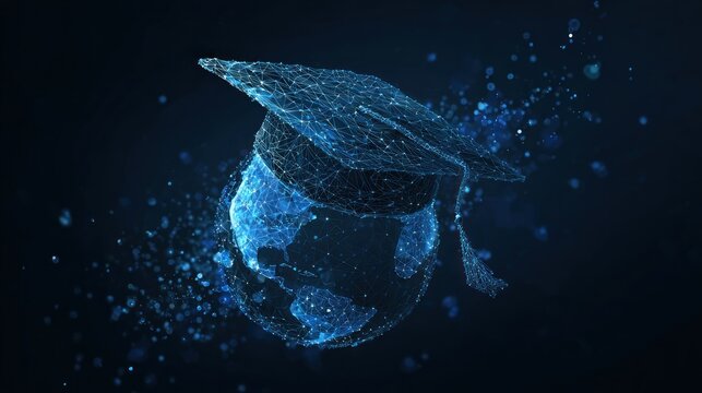 A digital cityscape with graduates in caps and gowns represents the intersection of education and future opportunities.