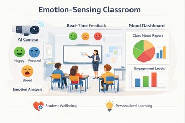 Emotion sensing classroom utilizing AI technology to provide real time feedback on student engagement levels thereby enhancing educational experiences and promoting personalized learning outcomes