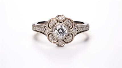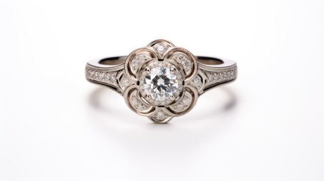 exquisite edwardian diamond cluster ring isolated on a white background generative AI