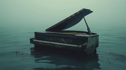 Eerie dark stone platform floats amidst teal smoke; mysterious, surreal, fantasy background. Perfect for game design, album art, or mysterious concept.