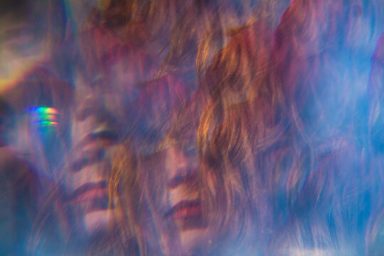 Mysterious ghostly figures illuminated in eerie forest under a glowing moonlight at night