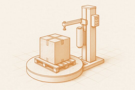 Innovative palletizing machinery efficiently handling a cardboard box on a rotating platform designed for autonomous logistics operations in automated warehouses