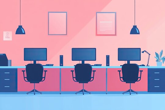 Spacious Office Hallway with Well-Lit Workstations and Easy Access