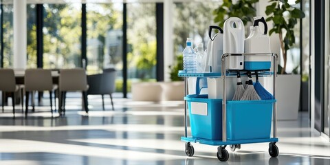 Efficient mop head cleaning sunlit restaurant floor, household management, floor