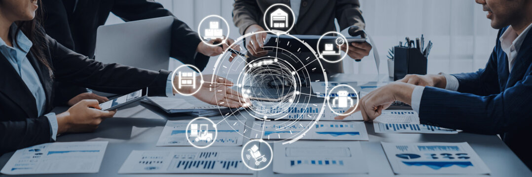 Logistic management concept. The complex process of planning, organizing and controlling resources to meet the needs of customers. The efficient flow and storage of goods, services