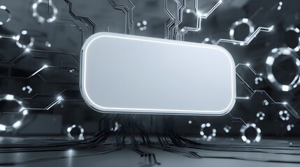 3D eco technology cluster surrounding a blank plaque for headline modern futuristic aesthetic