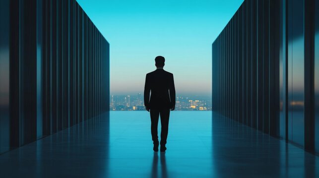 Business professional using computer technology in modern office