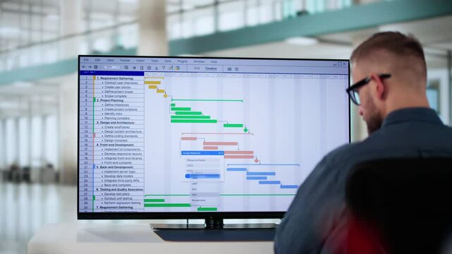 Planning and Implementation, Business people use laptop computers to manage work projects and update tasks. Work progress, efficient scheduling.Business Data Management scheduling interface