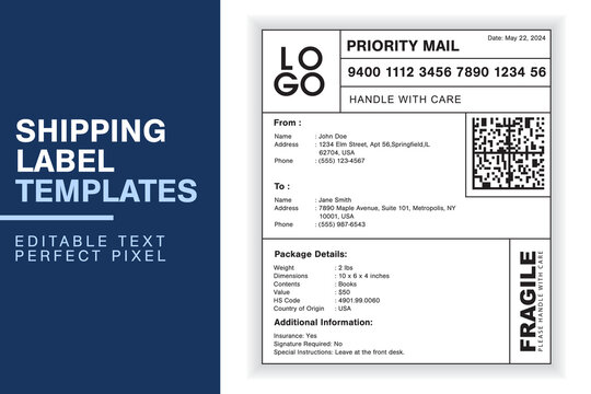 Professional Customizable Shipping Label Design Template with Sender, Recipient, Package Details, and Customs Information for Efficient Shipping