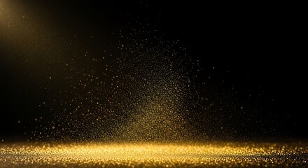 Golden effusion on a deep black abyss, a cascade of radiant shimmer, creating an ethereal golden landscape