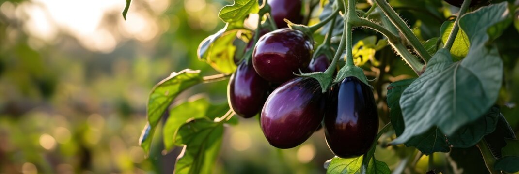 Organic farm-grown brinjal, also called eggplant or aubergine, cultivated naturally in gardens and kitchens.