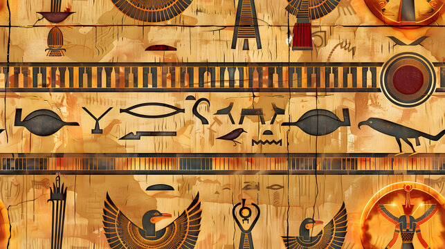 Ancient Egyptian hieroglyphs on ancient background seamless pattern for prints