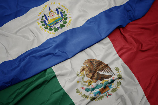 waving colorful flag of mexico and national flag of el salvador. macro