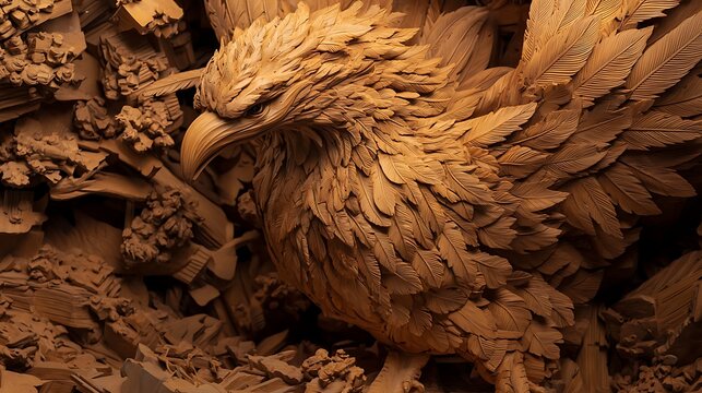 Intricate golden phoenix detail carved on a traditional festival float with elaborate feathers and textured patterns