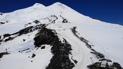 Aerial of Cheget mountain, North Caucasus. Picturesque snow capped peaks of Donguz Orun-Cheget-Karabashi in Elbrus region. Breathtaking summer landscape