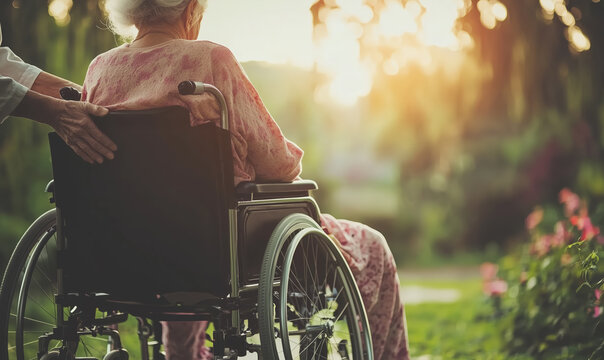 Compassionate nurse assisting elderly man in wheelchair
