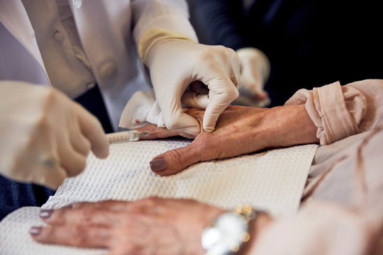 The hands of the child in the hands of the grandmother, the old brownish skin in the elderly woman, motherly love and care.