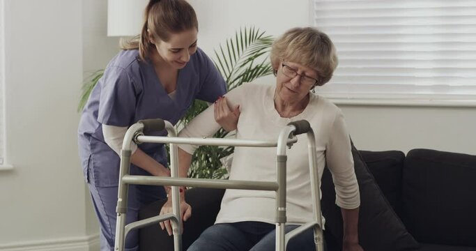 nurse doctor senior care caregiver help walker assistence retirement home nursing elderly woman black african american hospital clinic home disability disabled man
