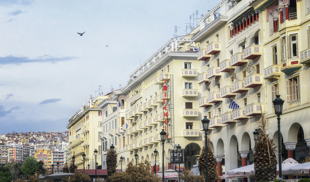 THESSALONIKI, GREECE - MARCH 26: Aristotelous Square on March 26, 2017 in Thessaloniki, Greece. Aristotelous Square is the main city square of Thessaloniki and is located on the city's waterfront.