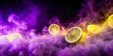 Electric violet smoke with bright lemon neon effects, creating a vibrant and striking event atmosphere, vibrant, striking, electric