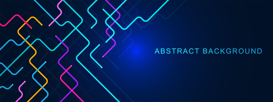 Abstract multi colored lines connection. Futuristic circuit board technology, computer tech and communication concept background.