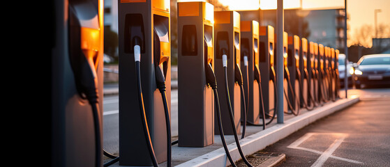 Modern fast electric vehicle chargers for charging car in park,  Generative AI