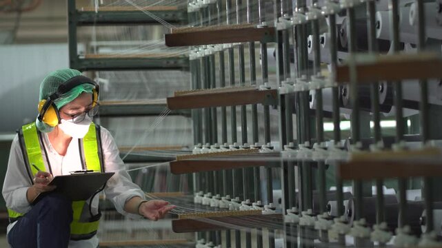 Professional engineer women, worker, mechanical, maintenance, engineering women training. Engineer woman worker work design program machine in Textile factory. industry.