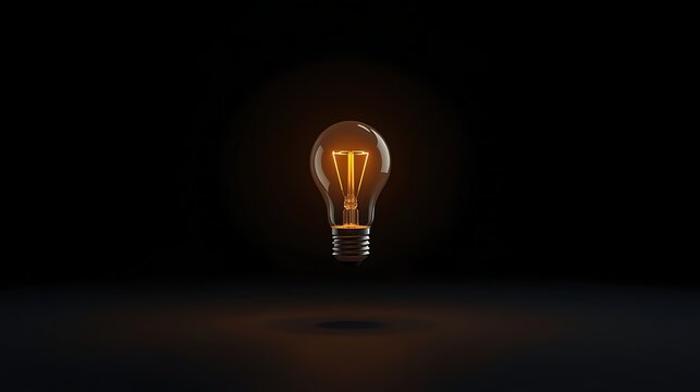 Single electric light bulb glowing in dark black background for imagination concept and creative problem solving metaphor symbol of startup business intelligence and individual inspiration