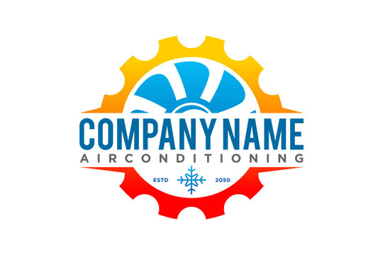 Air conditioning Cooling and heating house logo design blower fan icon symbol cog gear industry symbol