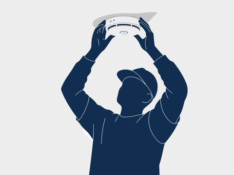 Fire Safety Technician Installing, Testing, and Maintaining Smoke Detectors. Worker Service Collection for Alarm System Installation and Maintenance.