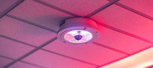 Smoke detector installed on the ceiling serves as a fire warning system with copy space