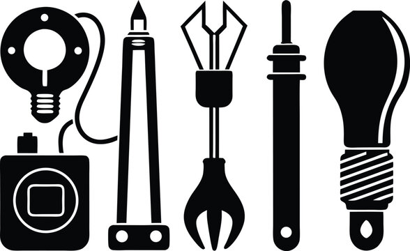 A collection of three distinct wooden A-frame step ladders, shown as a flat vector illustration for various projects