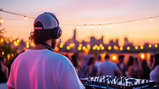 Vibrant DJ creating an electrifying atmosphere during a late-night music session at an urban venue