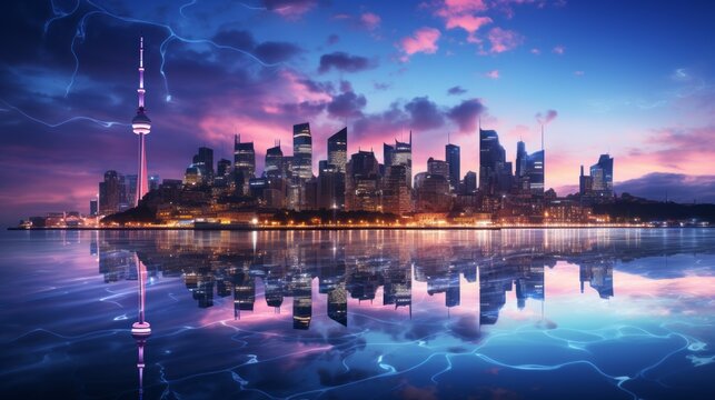City Skylights in Neon Colors with Speed Motion