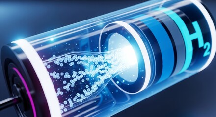 Hydrogen electrolyzer stack with visible layered coatings transitioning through sintering zone demonstrating thermal treatment effects on electrochemical materials.