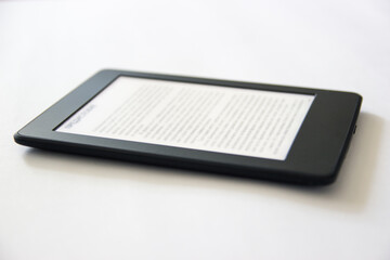 e-book concept of reading e-books. Book reader isolated on white background.