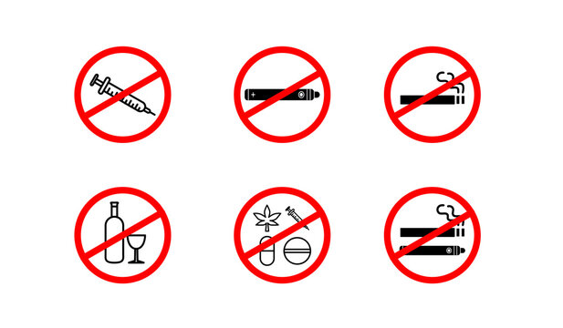 set no smoking warning signs icon logo cigarette tobacco vape nicotine isolated ban
