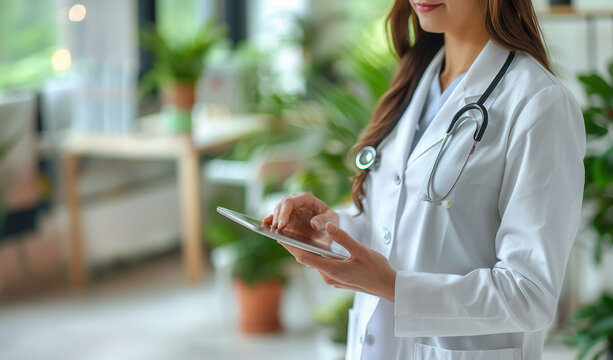 Modern Hospital Technology - Doctor Checking Electronic Medical Records on Tablet in High-Tech Healthcare Setting, doctor holding tablet,AI in health