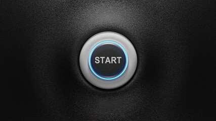 Future start push button. New startup, start a business, change or strategic vision concept. Modern car button with blue shine. 3d illustration