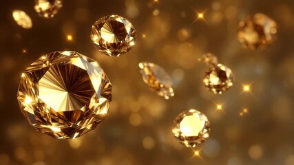 Golden diamonds float gracefully, reflecting light and casting enchanting glimmers. Their brilliance captivates with every turn, creating a magical visual experience. Watch the beauty unfold