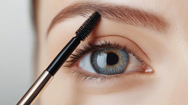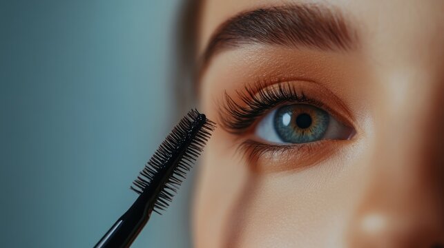 Application of mascara enhances eye features in a close-up view highlighting beauty and makeup techniques