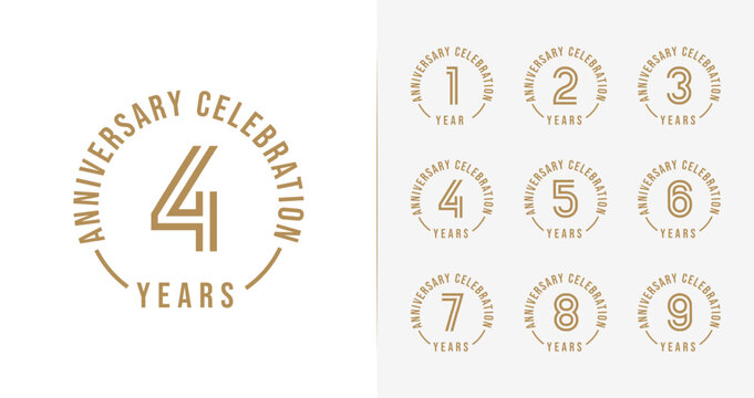 Set of anniversary logo design. 1, 2, 3, 4, 5, 6, 7, 8, 9, birthday symbol with minimalist style