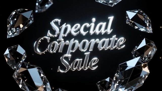 Sparkling diamonds surround elegant text announcing a special corporate sale event